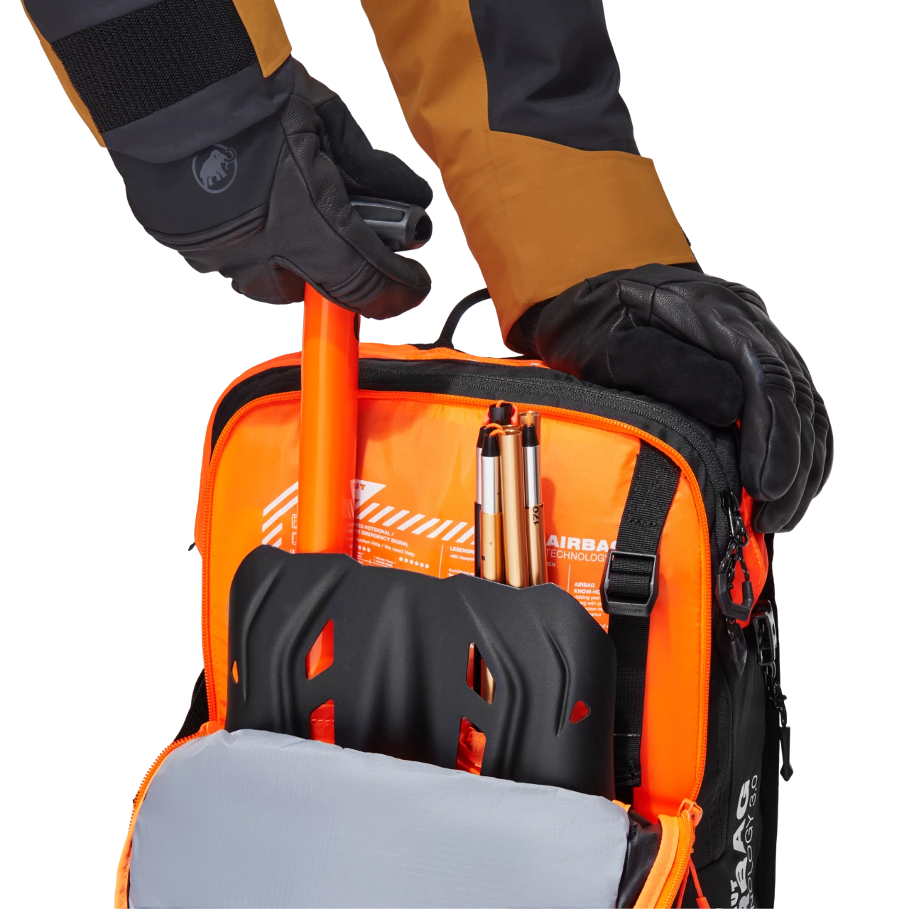 Klein im Gewicht, gross bei den Funktionen. Der Free 22 Removable Airbag 3.0 ist leicht und bietet alles, was du von einem Lawinenrucksack erwartest. Das Mammut Airbag System 3.0 ist zuverlässig, langlebig und eines der leichtesten auf dem Markt. Dank Elementen in Orange bist du aus der Ferne besser sichtbar. Das Tragesystem ist von Trailrunningwesten inspiriert, die Last liegt eng am Körper und schaukelt nicht. Für hohen Tragekomfort und passgenauen Sitz sorgen die optimierten Hüft- und Schultergurte sowie der neu entwickelte, 3D-vorgeformte Rücken. Praktisch: Das Hauptfach erreichst du von oben und auch bequem durch einen Reissverschluss am Rücken. Ski oder Snowboard befestigst du sicher mithilfe von Zugbändern. Die Sicherheitsausrüstung verstaust du im separaten Fach – für deine Sicherheit in Orange gehalten. Der Rucksack ist PFC-frei, Aussenstoff und Innenfutter bestehen aus Recyclingmaterial. Praktische Features wie Helmhalterung, seitliche Kompressionsriemen und Halterungen für Stöcke runden den Free 22 ab.