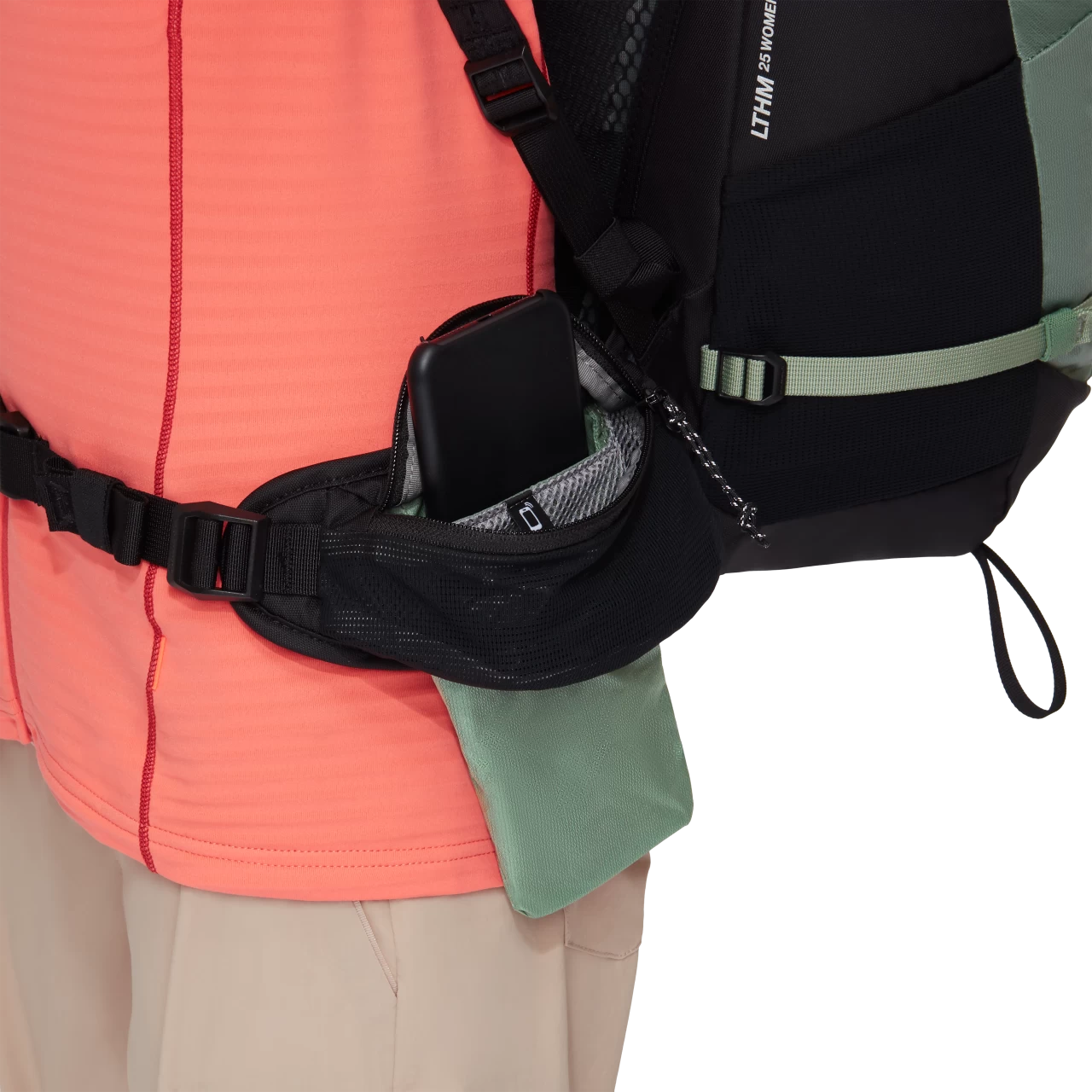 - Ausklappbare Mobiltelefon-Tasche am Hüftgurt