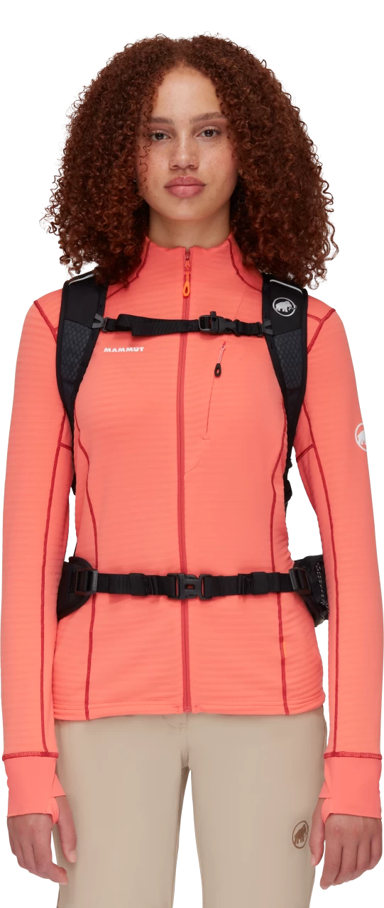 Du bist auf entspannten Wanderungen genauso zu Hause wie auf anspruchsvollen Touren. Der Lithium 25 Women auch. Hergestellt ist er mehrheitlich aus recycelten Materialien, die dauerhaft wasserabweisende Imprägnierung ist PFC-frei. Das Tragesystem und die Schulterträger sind speziell auf die weibliche Anatomie zugeschnitten. Zusätzlichen Tragekomfort geniesst du dank besonders leichter und atmungsaktiver Schulterpolsterung. Für gute Kühlung am Rücken sorgen Luftkanäle im 3D EVA-Schaum. Der gepolsterte Hüftgurt hat eine ausklappbare Tasche für dein Smartphone. Brauchst du ihn nicht, nimmst du ihn einfach ab. Genauso machst du es mit der integrierten Regenhülle. Der Lithium 25 Women ist mit Trinksystemen kompatibel. Auf die seitlichen Netztaschen greifst du auch im Gehen zu. Ein flexibler und vielseitig einsetzbarer Begleiter für deine Abstecher in die Berge.