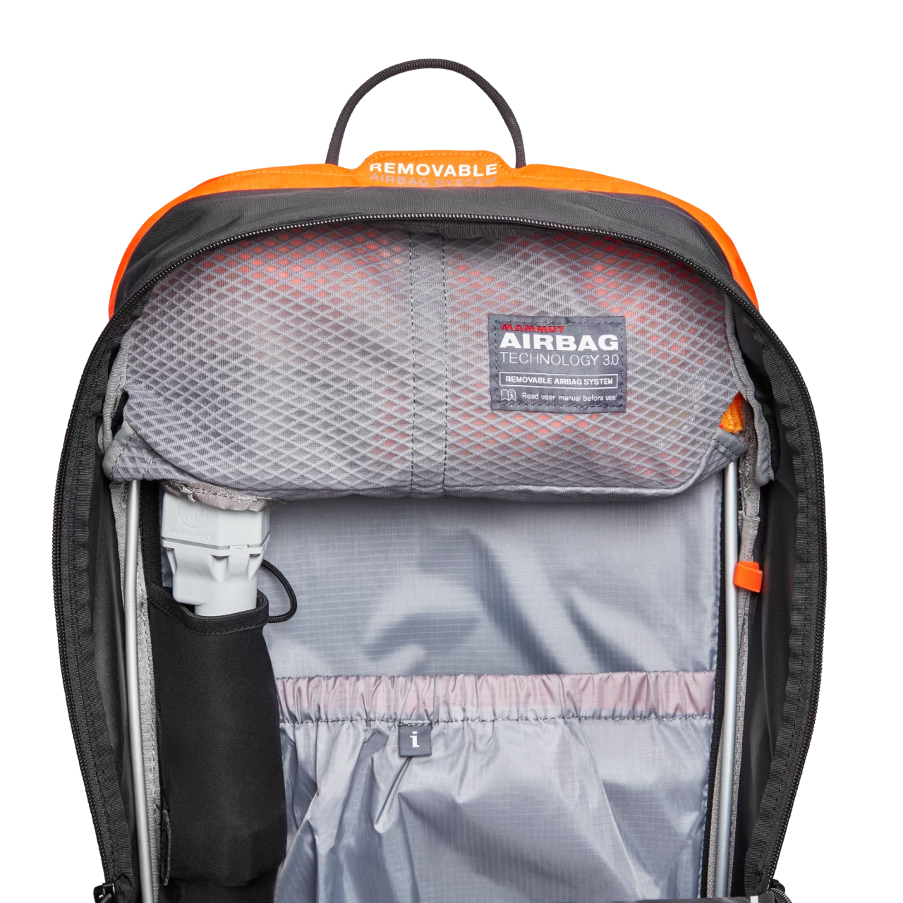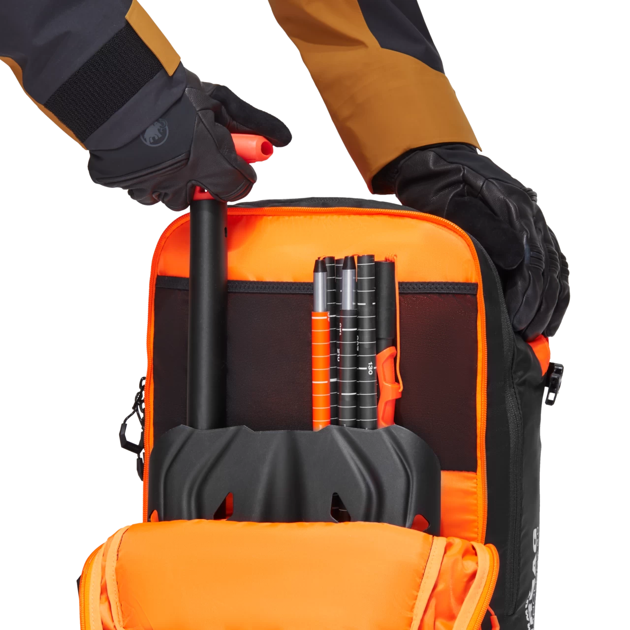 Der Pro 35 Removable Airbag 3.0 ready erfüllt die Ansprüche von Bergführern und Profis. Er ist mit dem Airbag System 3.0 kompatibel, einem der leichtesten auf dem Markt. Dank Elementen in Orange bist du aus der Ferne besser sichtbar. Für hohen Tragekomfort und passgenauen Sitz sorgen die optimierten Hüft- und Schultergurte sowie der neu entwickelte, 3D‑vorgeformte Rücken. Besonders nützlich: Das Hauptfach erreichst du von oben und auch durch einen Reissverschluss am Rücken. Muss es schnell gehen, hast du so deine gesamte Ausrüstung rasch zur Hand. Ski oder Snowboard befestigst du sicher mithilfe von Zugbändern. Die Sicherheitsausrüstung verstaust du im separaten Fach – für deine Sicherheit in Orange gehalten. Der Rucksack ist PFC-frei, Aussenstoff und Innenfutter bestehen aus Recyclingmaterial. Praktische Features wie Helmhalterung, seitliche Kompressionsriemen und Halterungen für Stöcke und Eispickel runden den Pro 35 ab. Ein Alleskönner, der hinsichtlich Ausstattung und Sicherheit keine Wünsche offen lässt. Ready-Rucksäcke sind kompatibel mit dem Airbag 3.0-System, werden jedoch ohne Airbag (Auslöseeinheit) und ohne Kartuschen ausgeliefert.