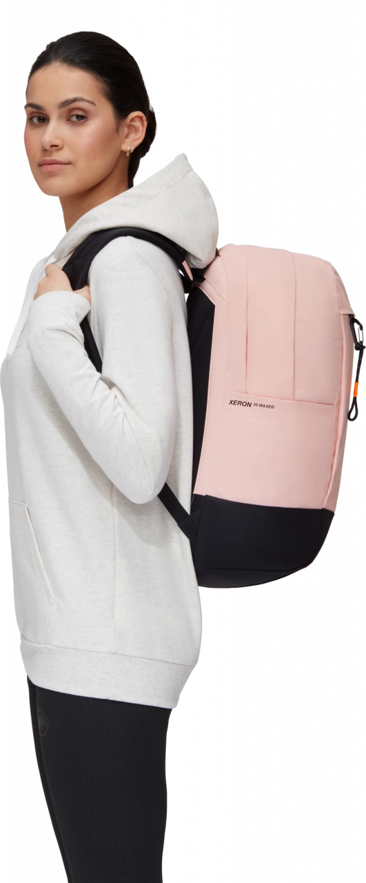 Ein klassischer Tagesrucksack der Xeron Familie mit praktischen Features und tollen Details. Das Aussenmaterial besteht aus recyceltem Polyester. Die Behandlung der Oberfläche mit Wachs verleiht dem Rucksack den lässigen Used Look. Für hohen Tragekomfort sorgen die anatomisch geformten und weich gepolsterten Schultergurte. Im Innern findest du mehrere Fächer, eines davon für deinen Laptop. Deine Schlüssel befestigst du sicher am Clip im Reissverschlussfach. Zwei Fronttaschen mit Reissverschluss bieten zusätzlichen Stauraum. Dank Mammut Mini Biner und bedrucktem Innenfutter hast du auf deinen urbanen Streifzügen immer ein Stück Bergwelt im Gepäck.