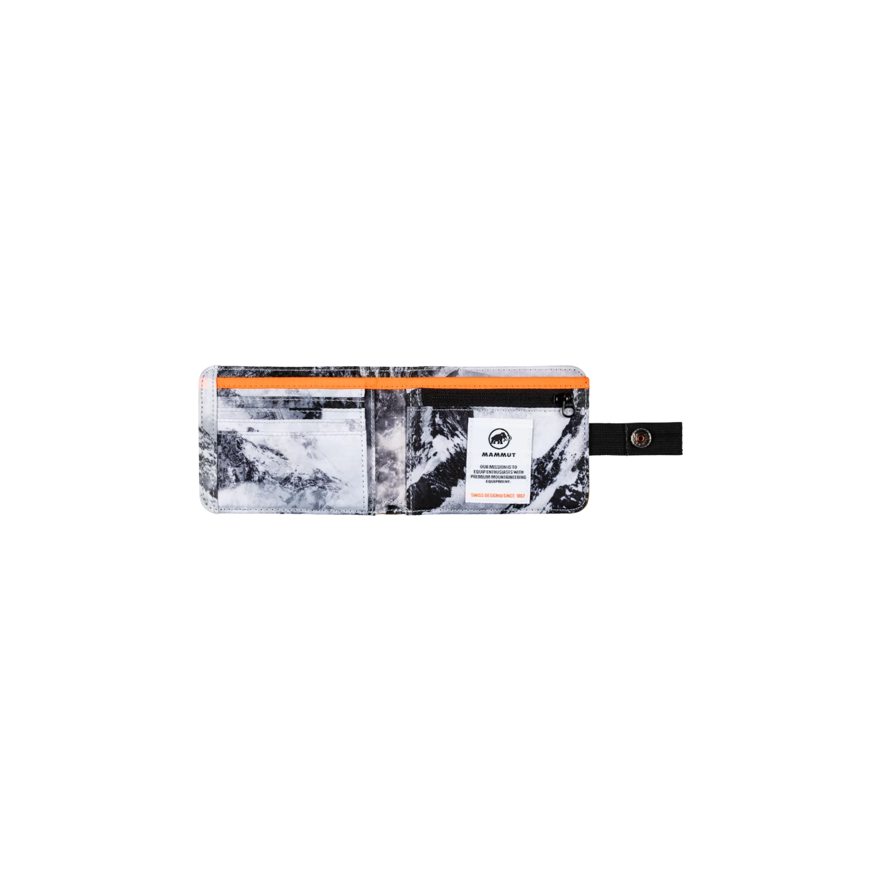 Praktische Brieftasche: Xeron Wallet. Wie die gesamte Xeron Produktfamilie ist auch das Wallet eine Hommage an die Mammut Herkunft. Mit einzigartigen Details wie einem Bergprint im Innern, der Darstellung des Mammut Gründungsjahrs 1862 oder Akzenten in Safety Orange stellt das Xeron Wallet eine Verbindung zur Mammut Geschichte her.